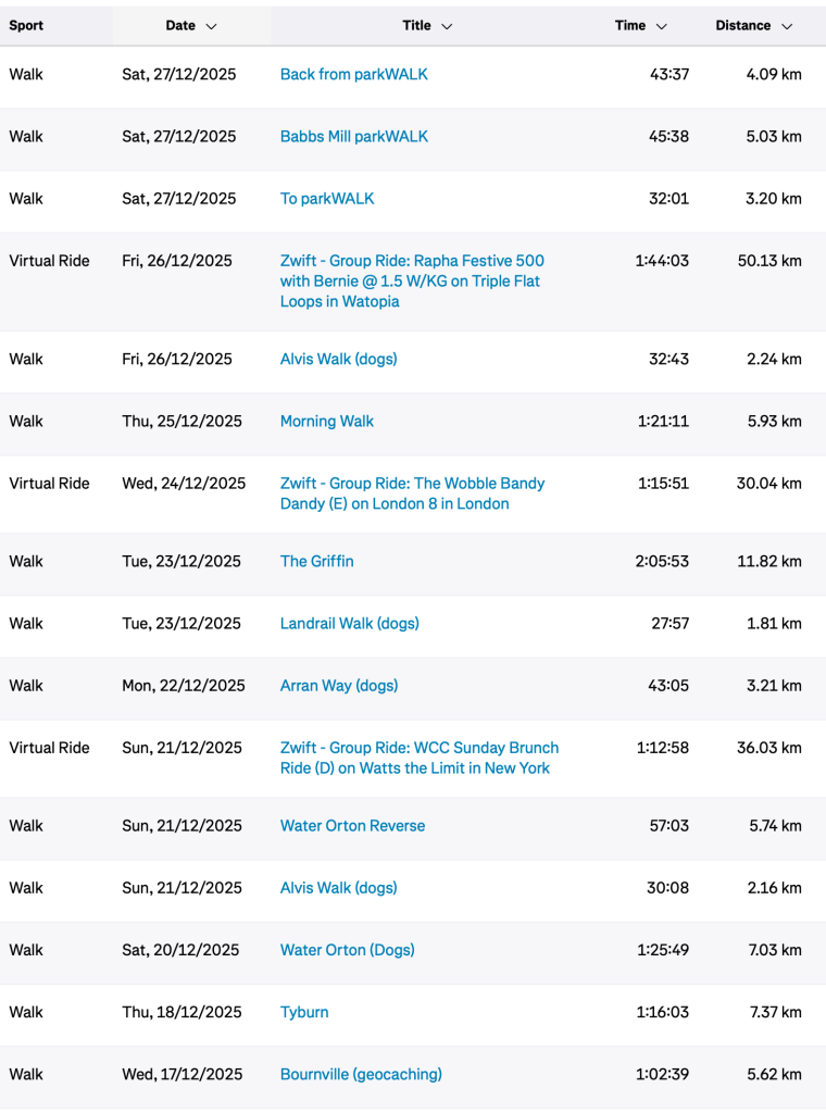 I have been managing to take the dogs out (which they appreciate – they’re more knackered than usual !) and do a few rides on Zwift.